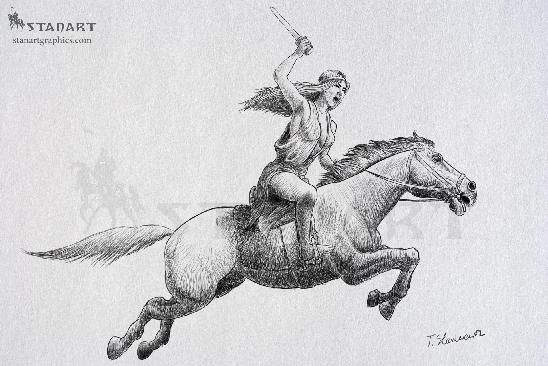 Valkyrie on white horse